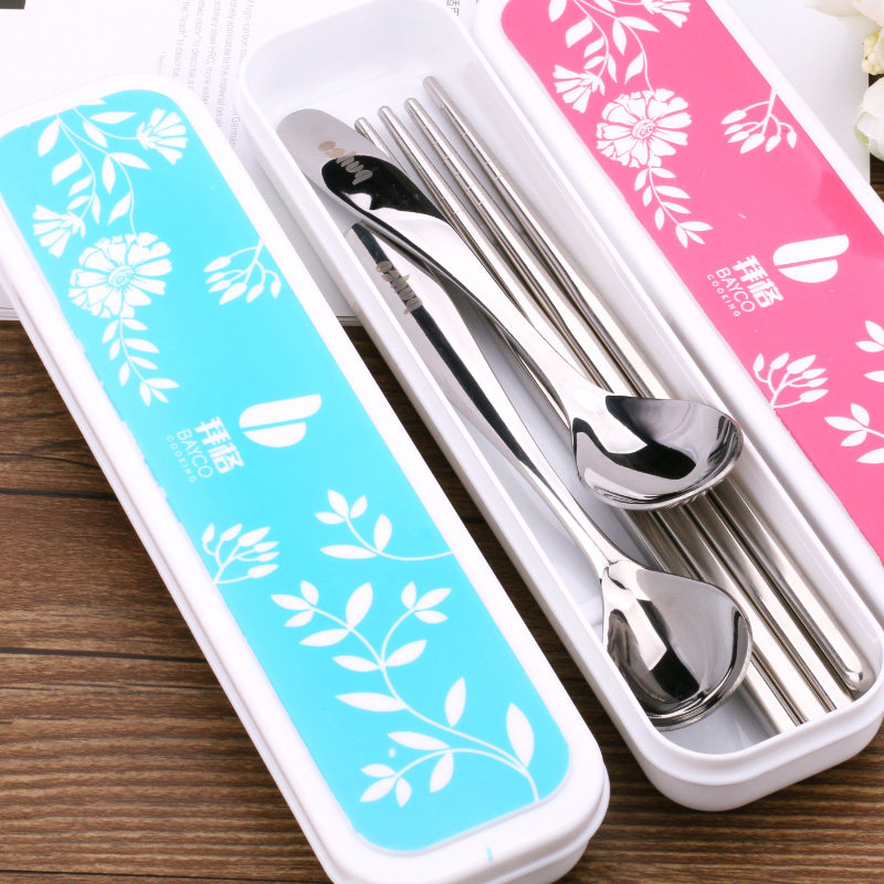 拜格便携式餐具旅行学生筷子勺子叉子五件具盒