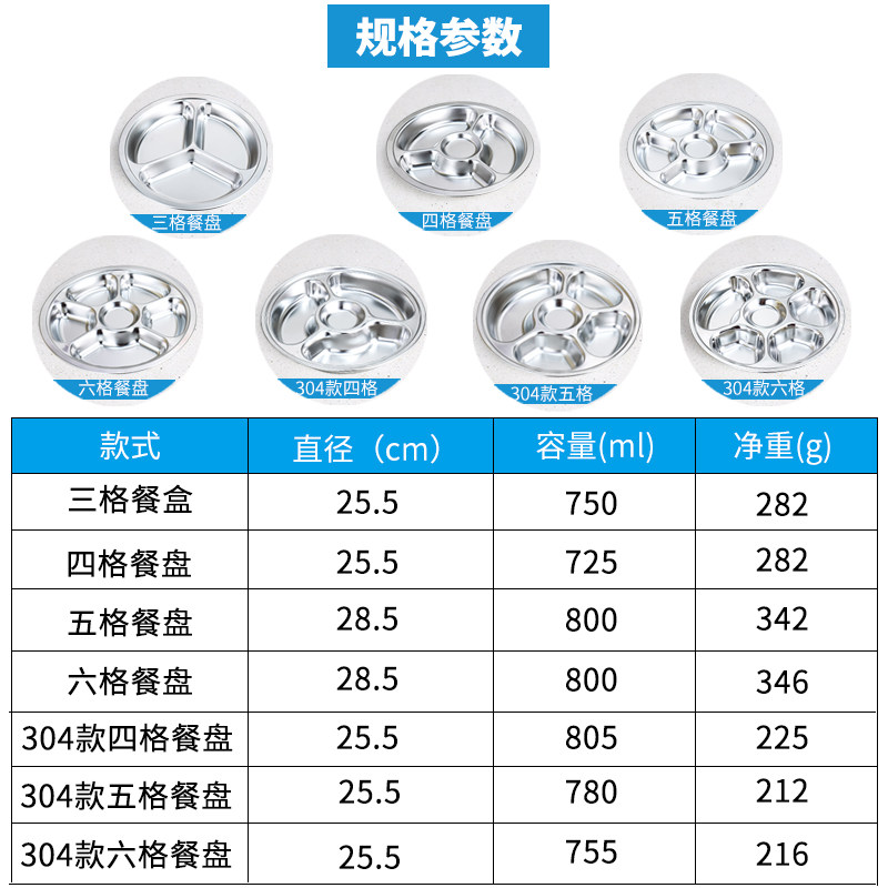 尚合儿童不锈钢餐盘分格圆形快餐盒SH-TA054