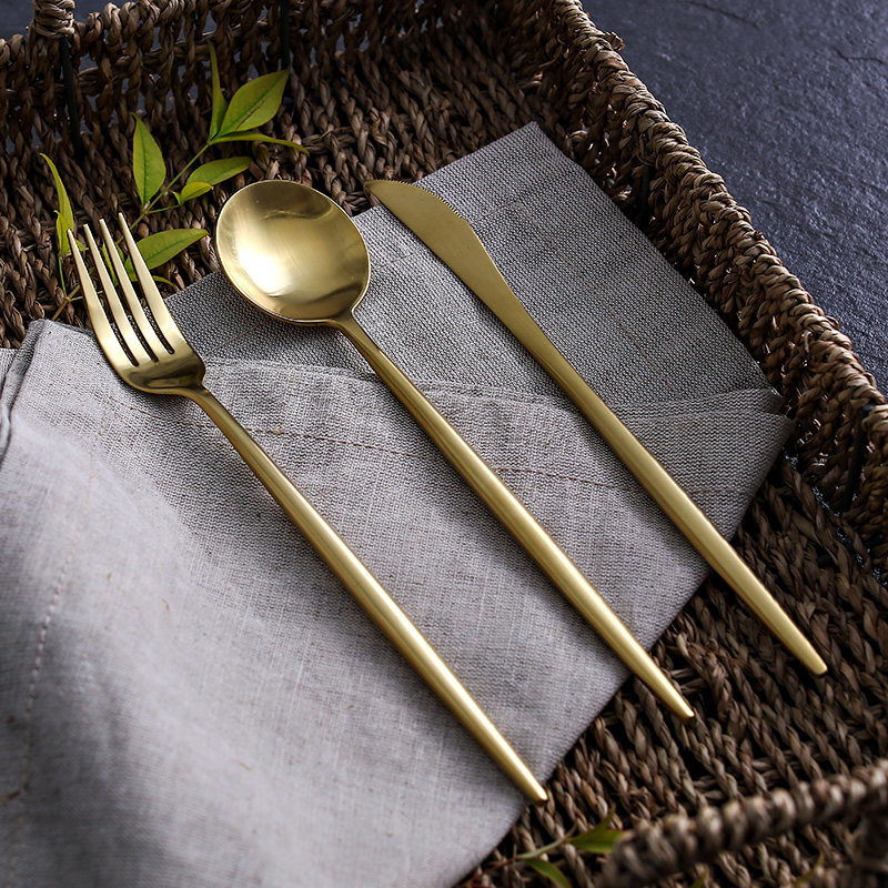 奇居良品罗菲不锈钢金色拉丝主餐刀DCTZ012ZCC