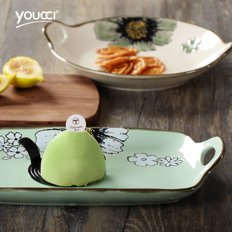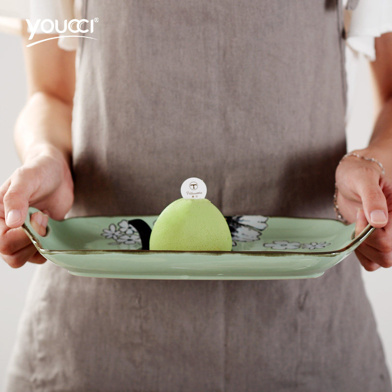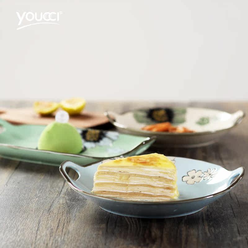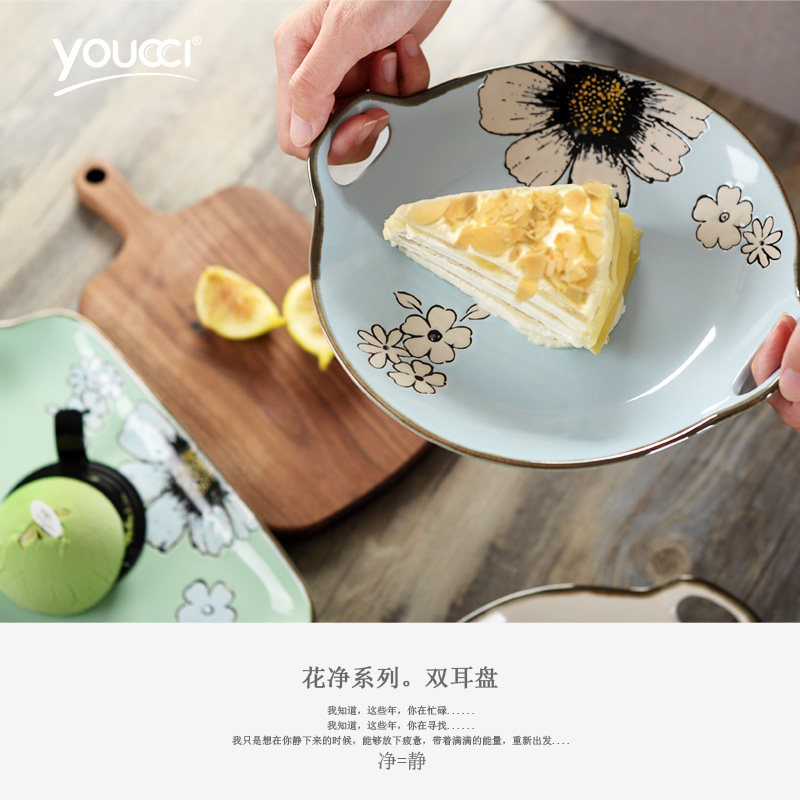 youcci悠瓷双耳长方形盘 长方形双耳盘-花净(浅蓝)
