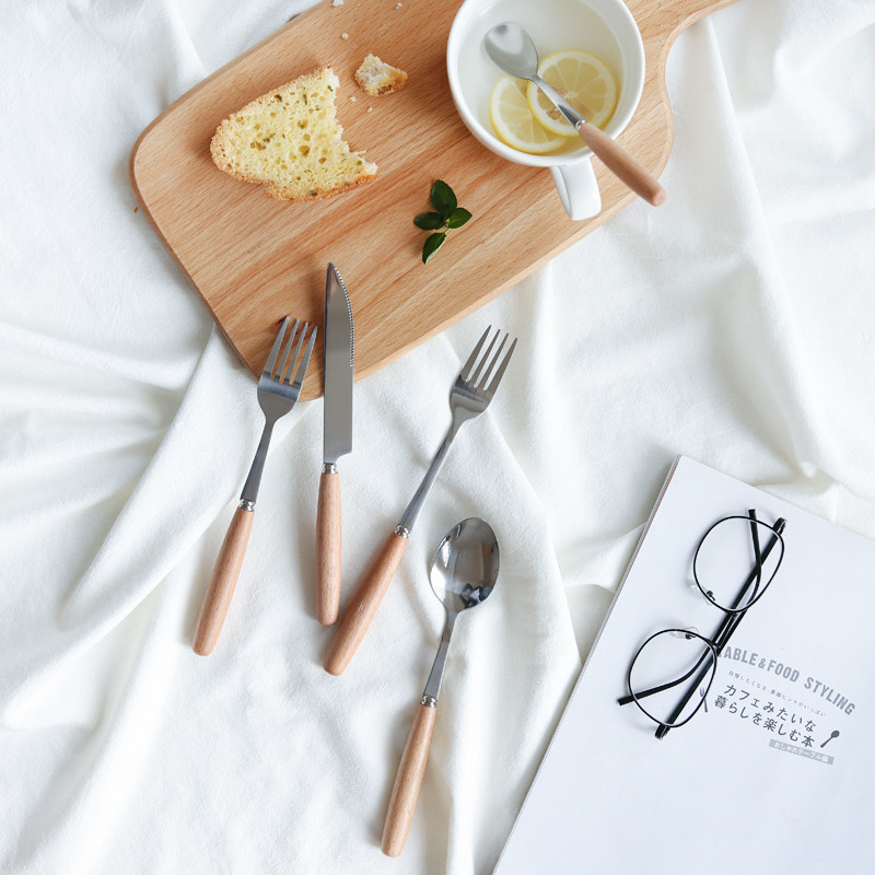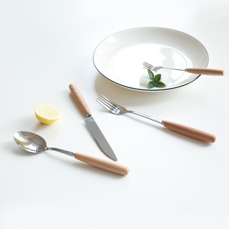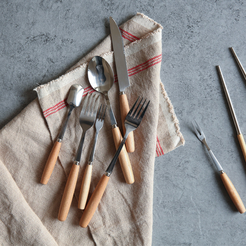 川岛屋木槿日式榉木柄不锈钢刀叉餐具s26