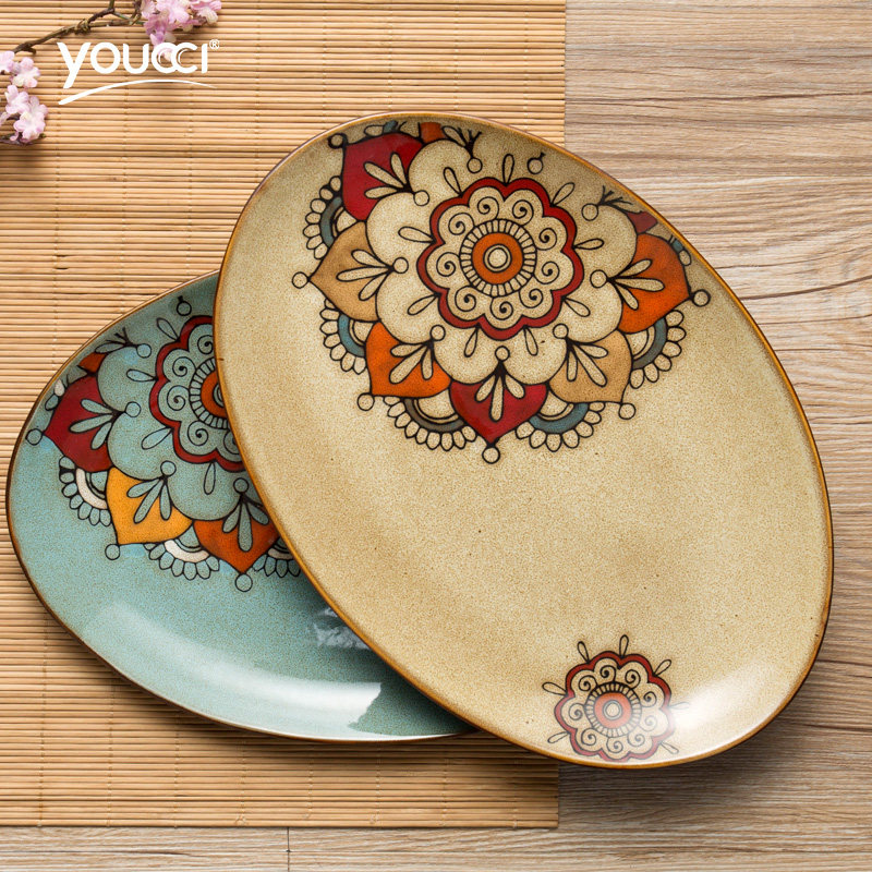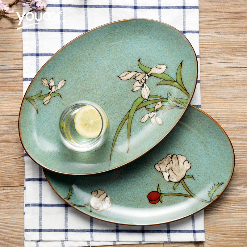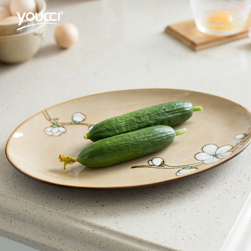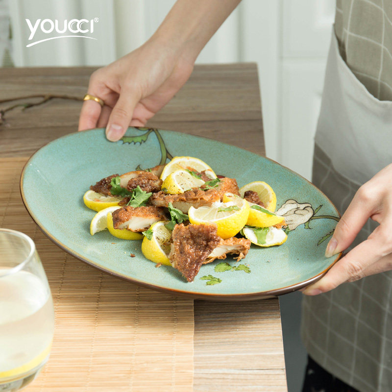 youcci悠瓷创意椭圆形陶瓷鱼盘餐具12.5寸鱼盘-鱼趣