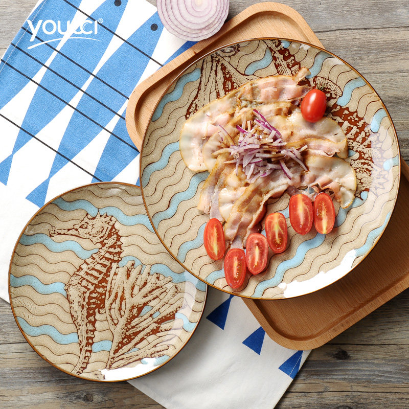 youcci悠瓷创意海马系列陶瓷盘子8.5寸小圆盘-海马
