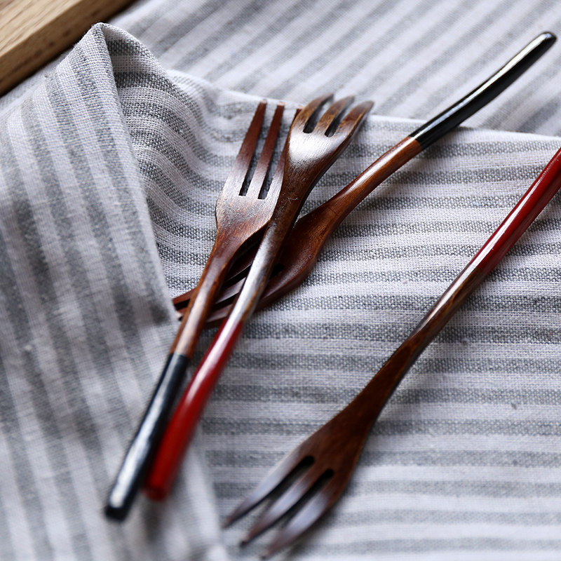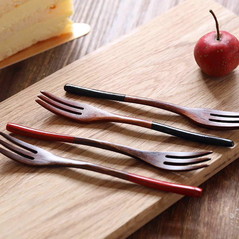 川岛屋日式红黑柄水果叉蛋糕叉s9