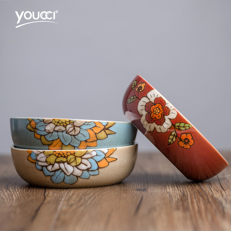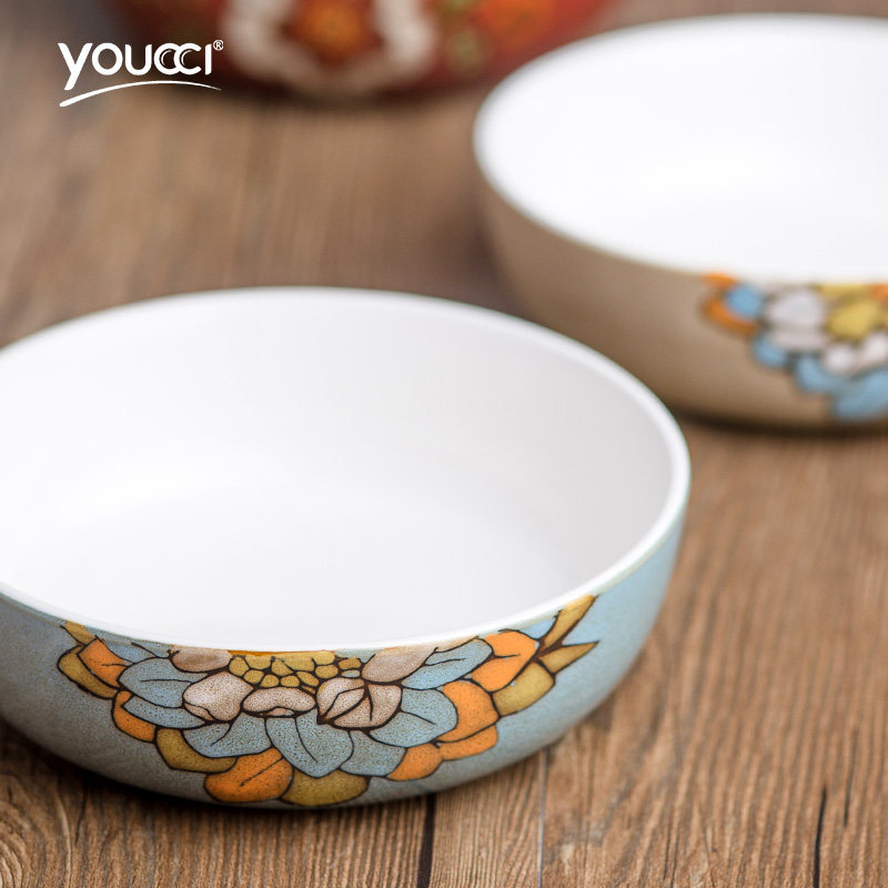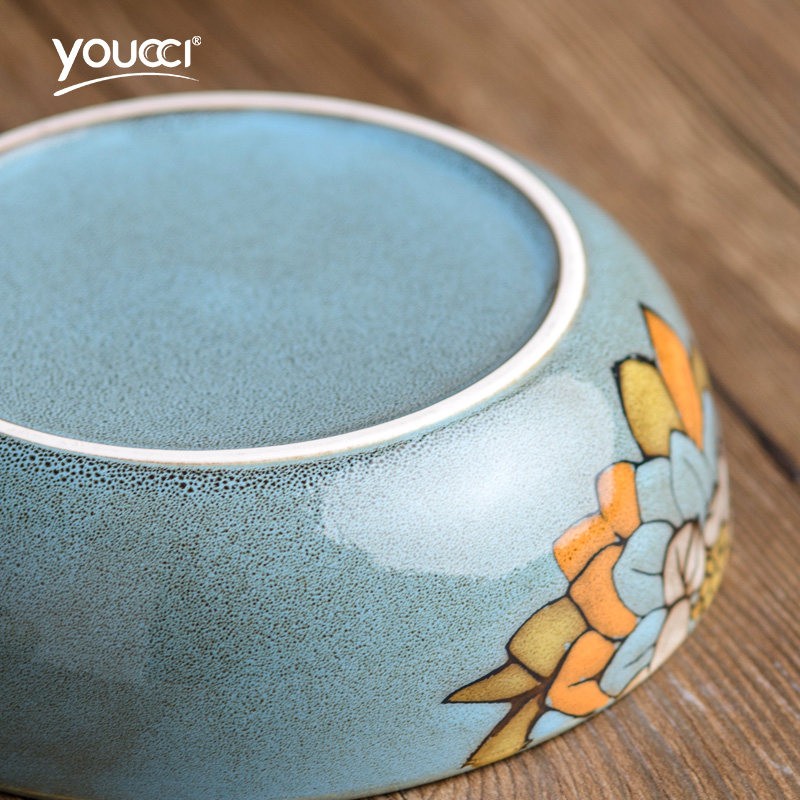 youcci悠瓷7寸创意手绘花朵陶瓷碗红颜蓝蓉7寸碗