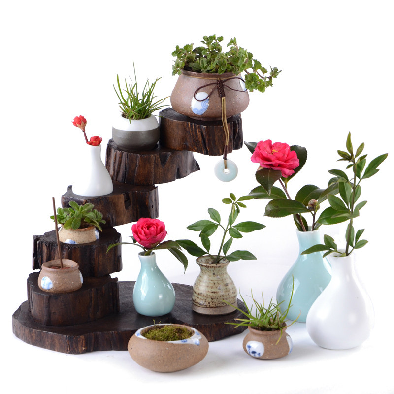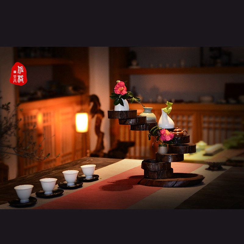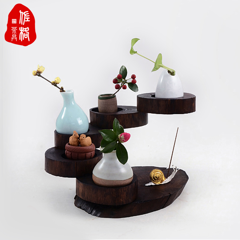 佐格茶具摆件实木可旋转花器摆台