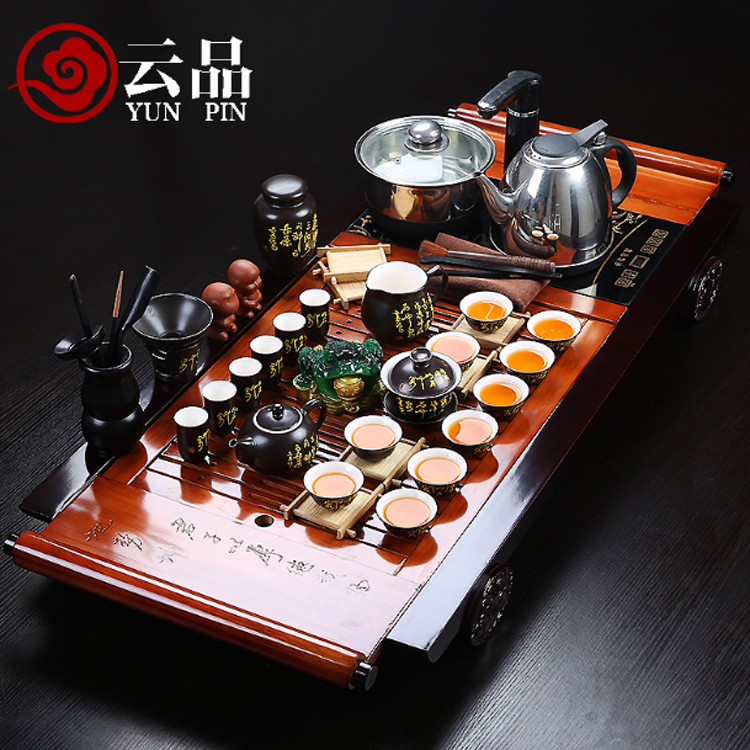 云品家居实木茶盘紫砂冰裂汝窑功夫茶具r003