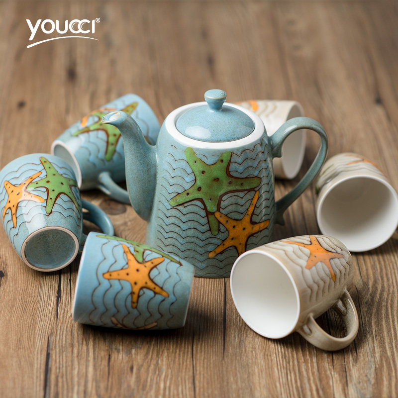 youccci悠瓷8件套陶瓷茶具海洋系列茶具套装