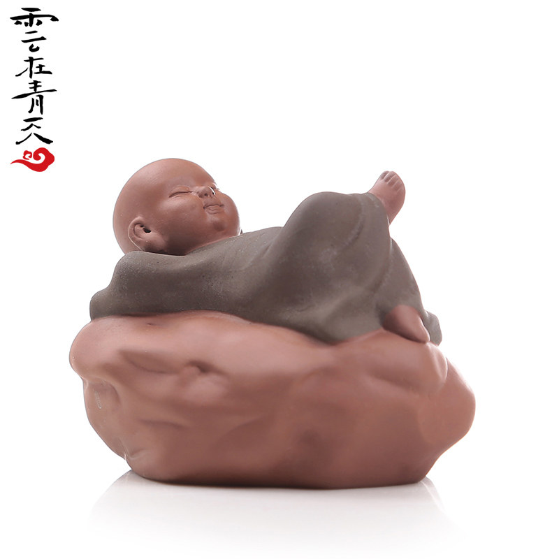 云在青天茶宠创意宜兴紫砂摆件 静思 祈福(灰)