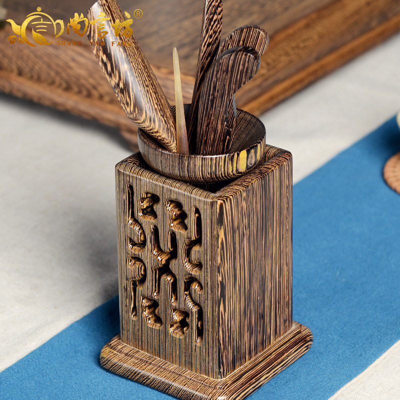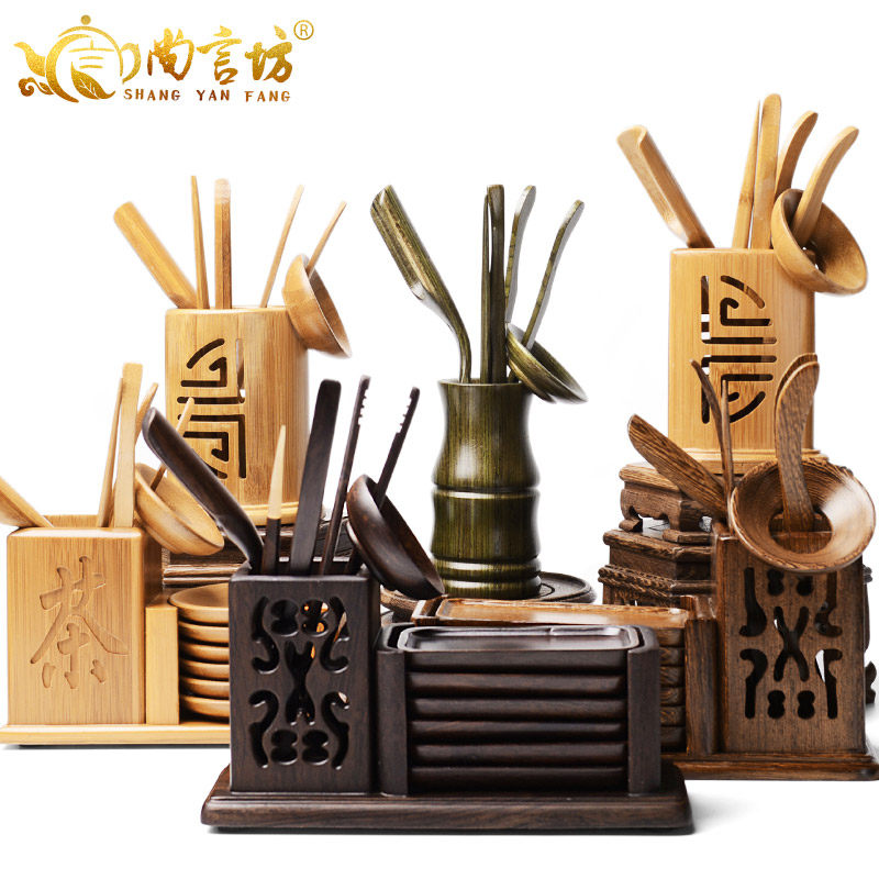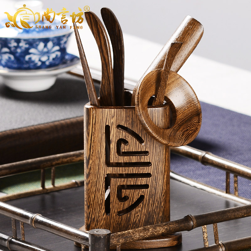 尚言坊功夫茶具鸡翅木四方镂空茶道SLP036