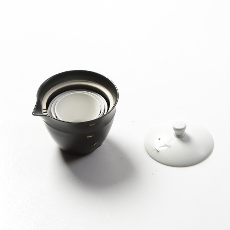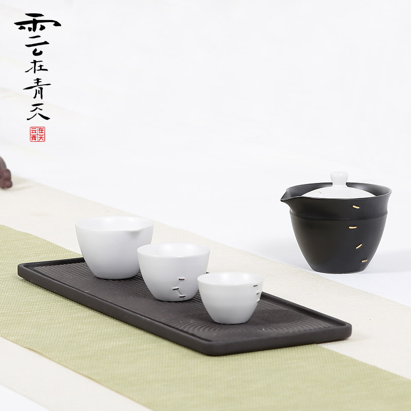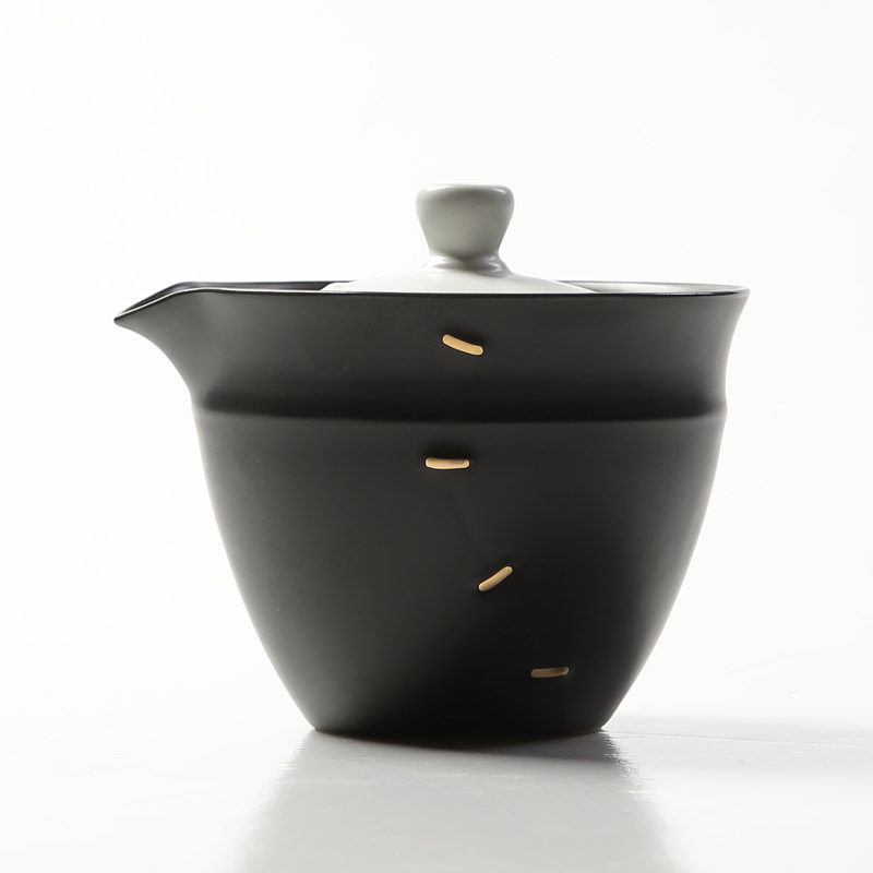 云在青天黑陶锔瓷金繕快客杯陶侧把壶一壶二杯带