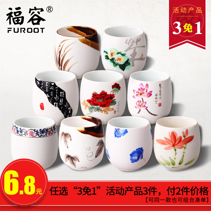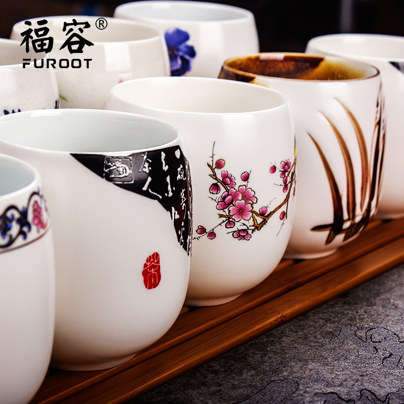 福容功夫茶具大号陶瓷茶杯腰鼓杯