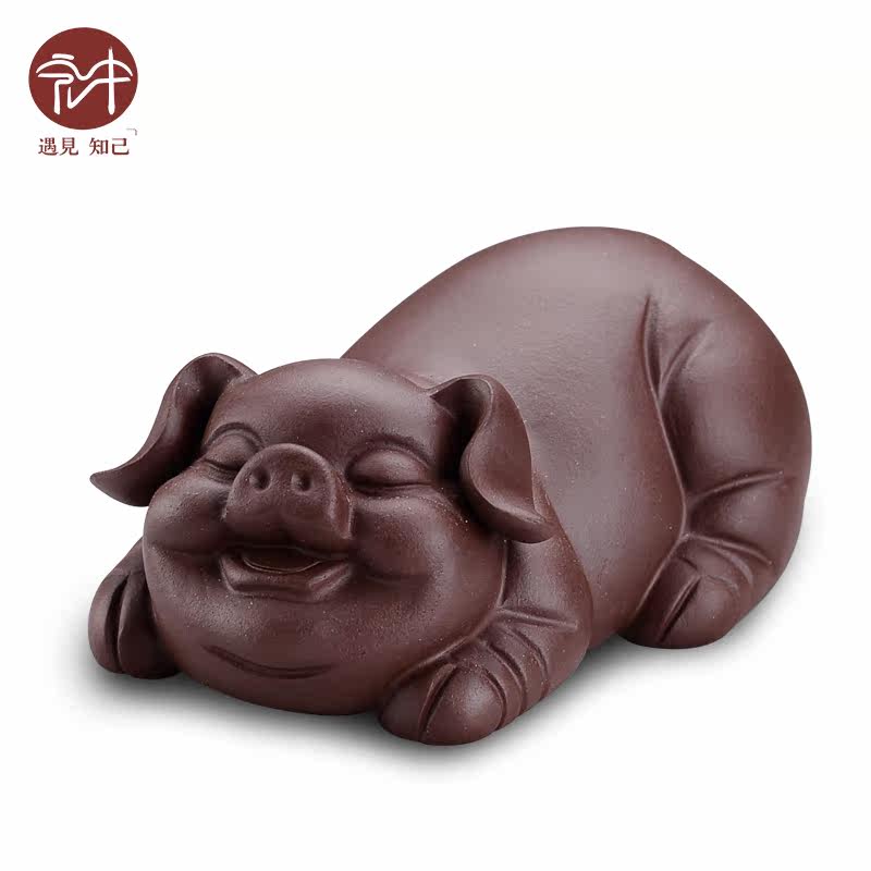 紫砂欢喜猪茶宠摆件