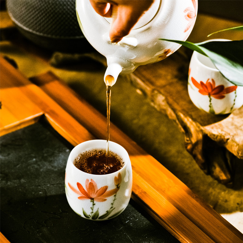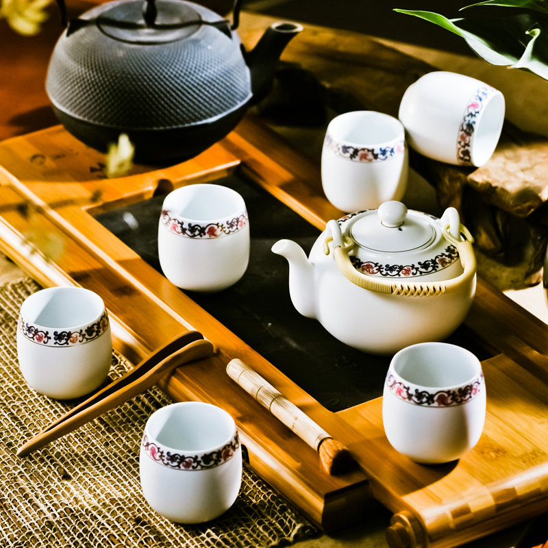 鹏博陶瓷景德镇茶具7头提梁壶blhh
