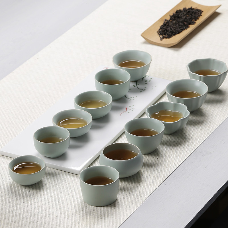 云在青天汝窑杯子日式品茗杯铁壶垫