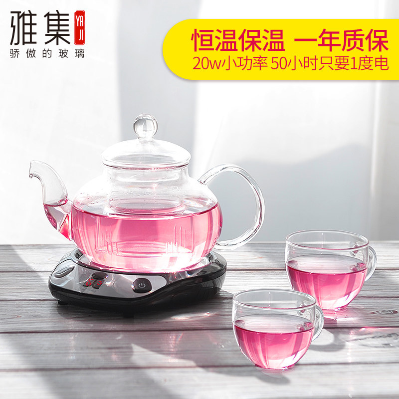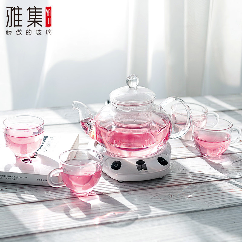 雅集花茶壶保温耐热玻璃茶壶梨形壶400ml+熊时代粉