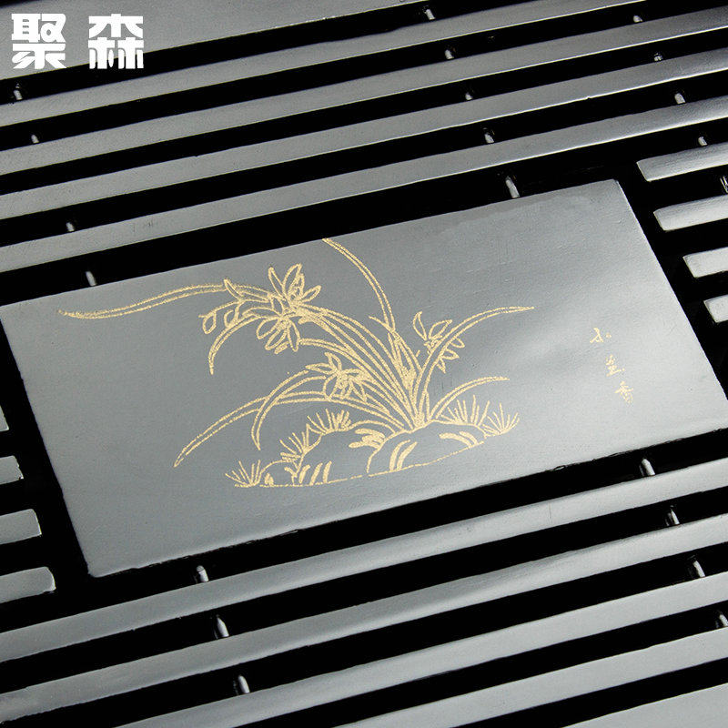 聚森茶海茶托实木茶盘黑色小兰香茶盘 桔