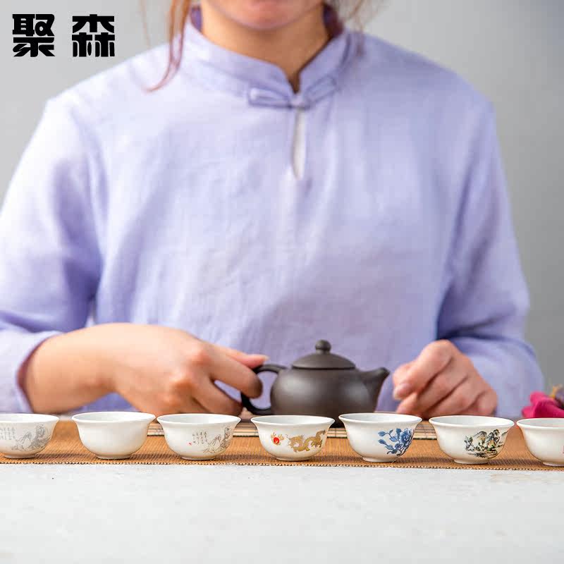 聚森茶杯陶瓷青花瓷水杯JS-1708