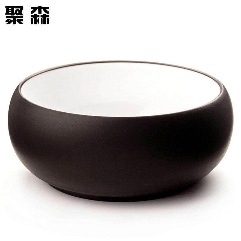 聚森紫砂茶洗大号笔黑内白紫砂茶