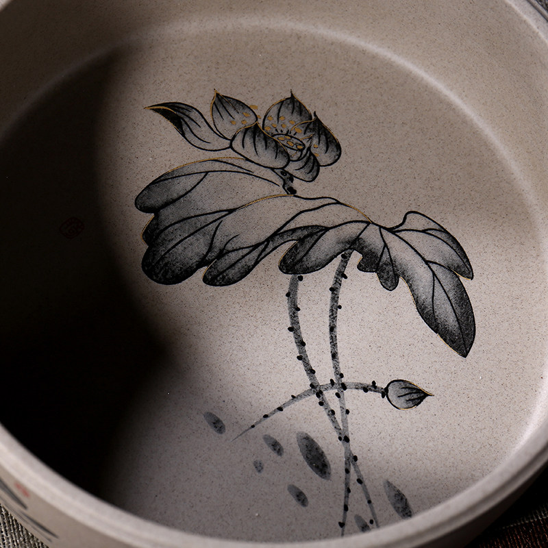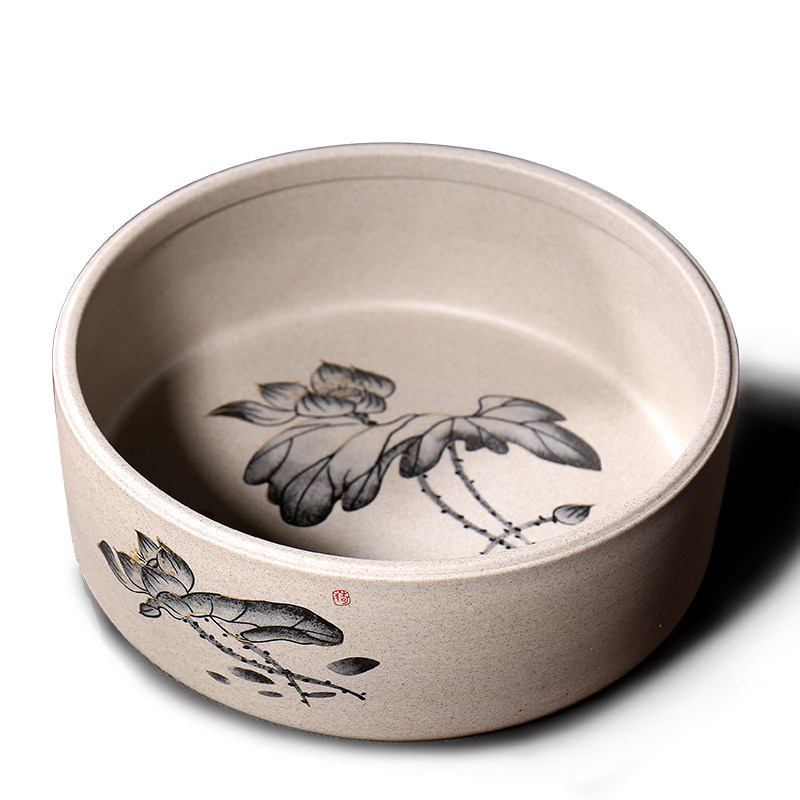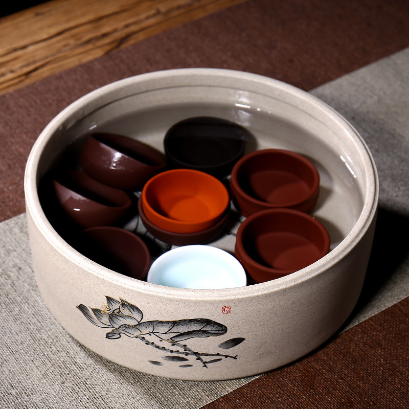 古悦堂茶具大号茶洗紫砂粗陶彩绘杯清韵茶洗