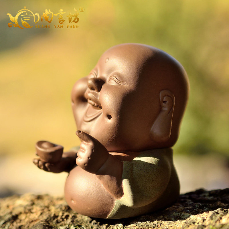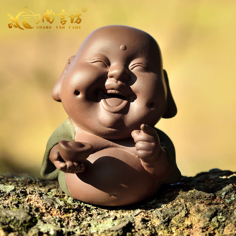 尚言坊茶宠摆件茶具彩砂陶-招福乐佛