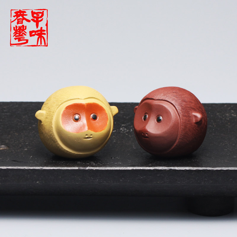 早味春华宜兴紫砂茶宠清水泥灵猴