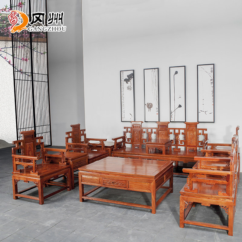 冈州黄花梨木中式红木沙发