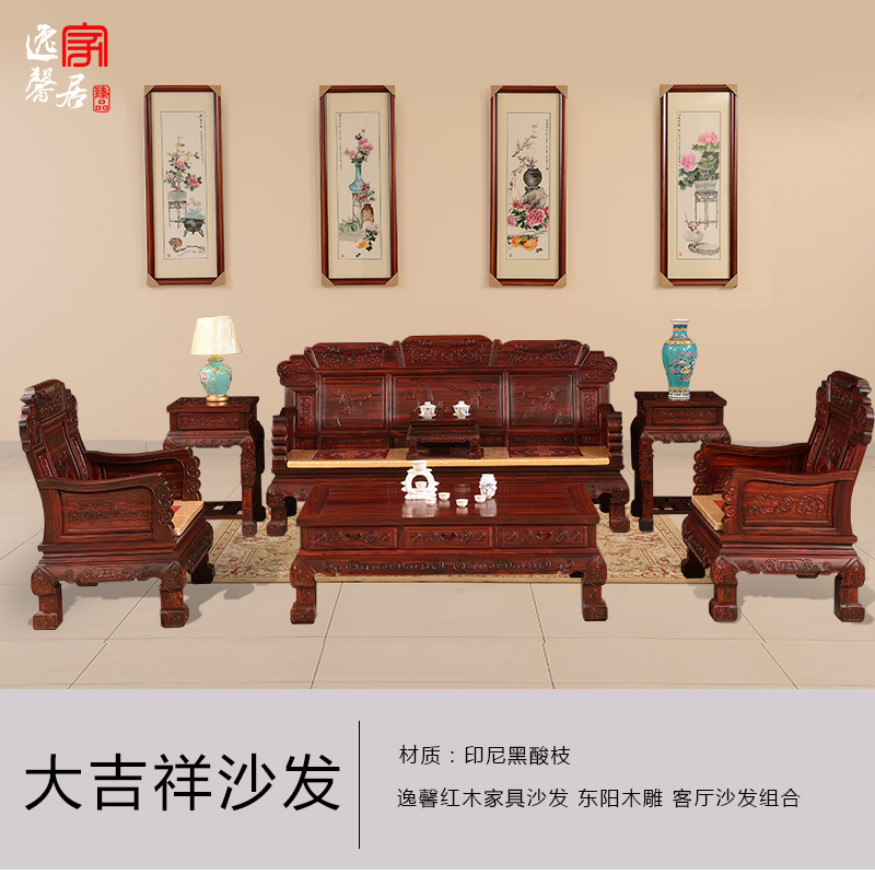 逸馨东阳红木吉祥实木沙发HSZ-02