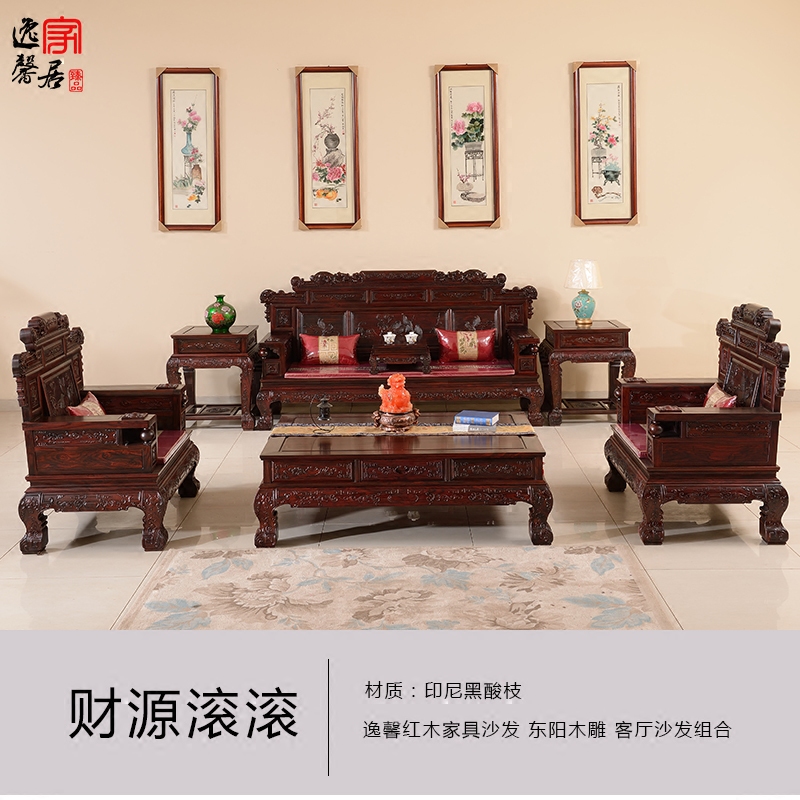 逸馨印尼黑酸枝木财源滚滚实木沙发HSZ-40