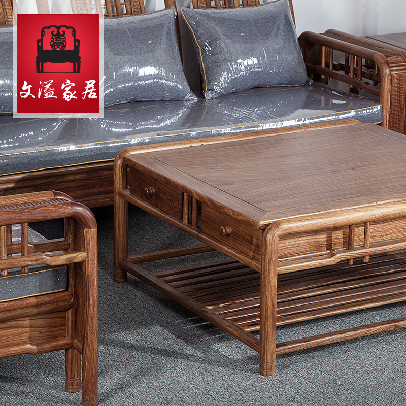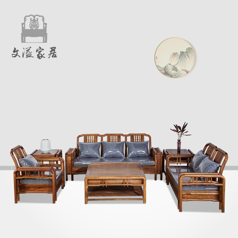 文溢红木沙发刺猬紫檀实木沙发茶几SF-04