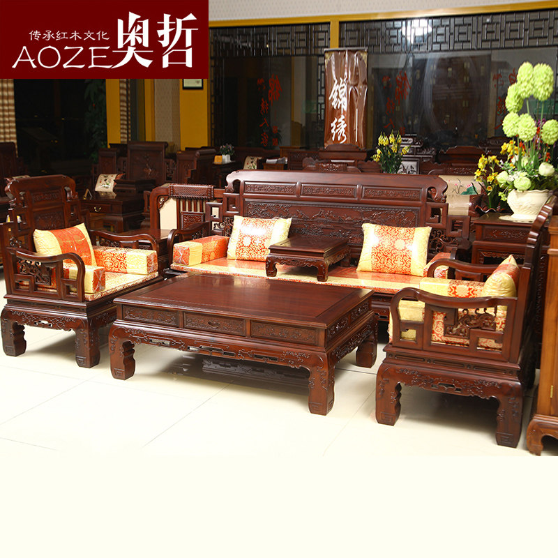 奥哲红木六合同春实木沙发as50