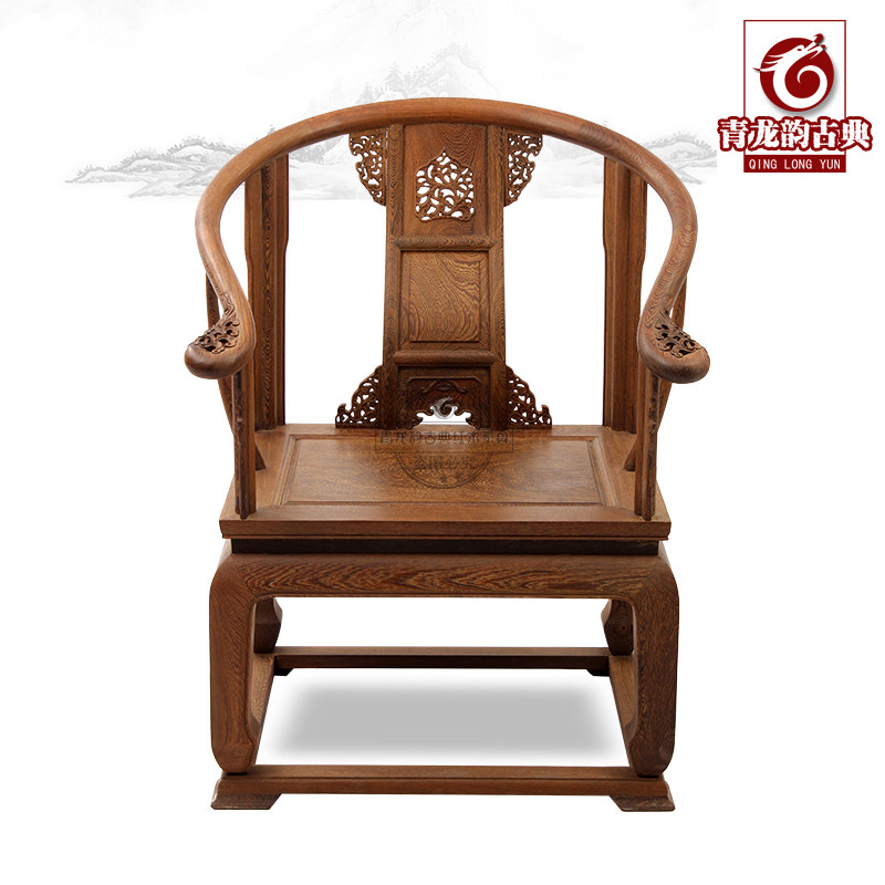 青龙韵红木家具鸡翅木仿古会皇宫椅三件套112
