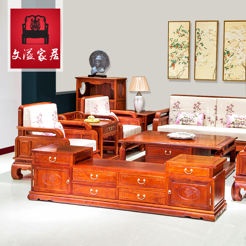 文溢红木家具简易沙发缅花沙发套装