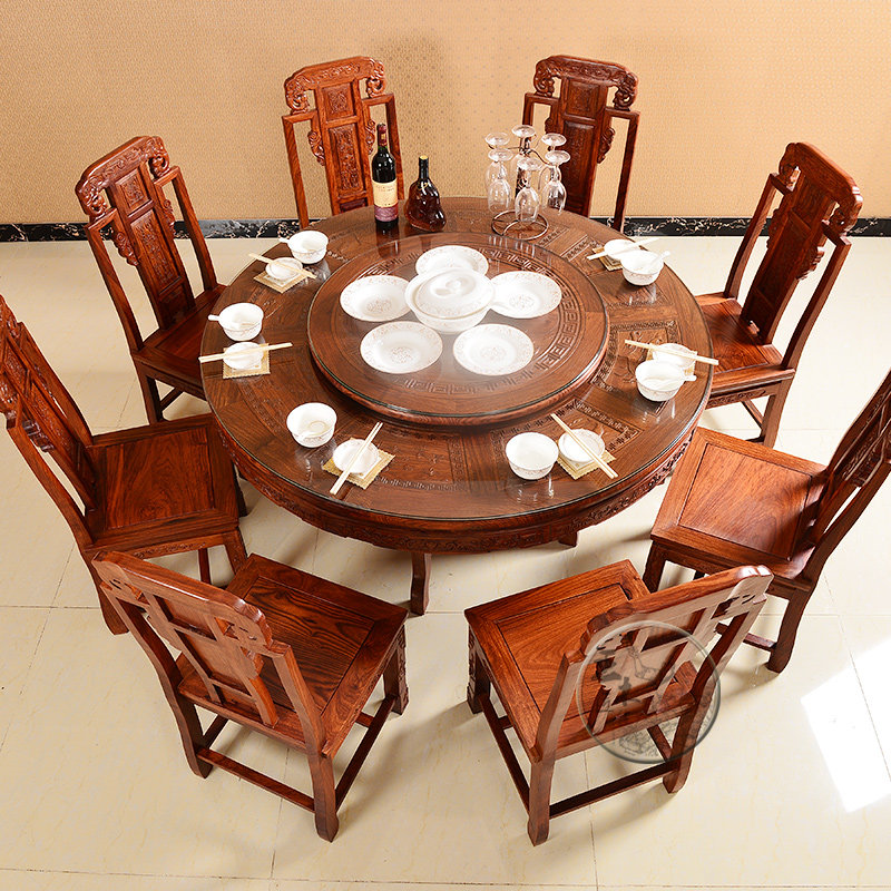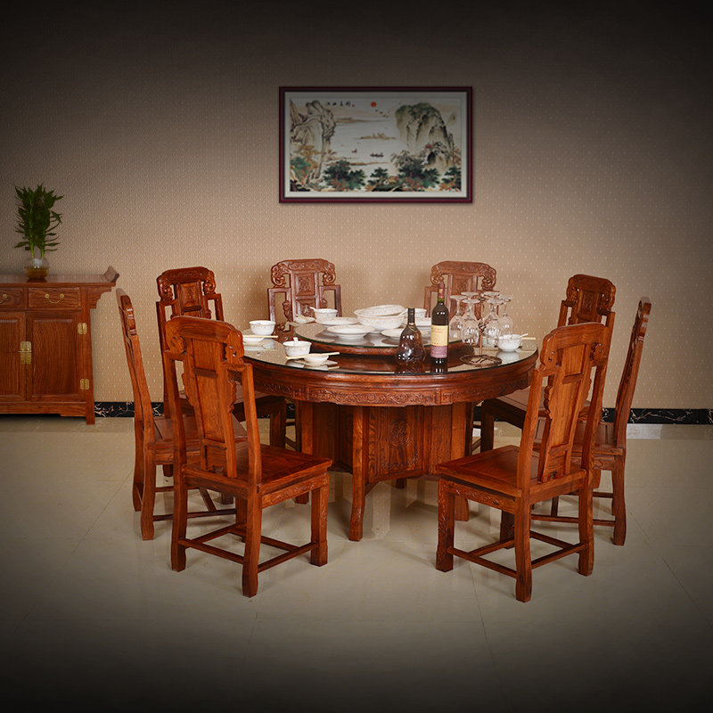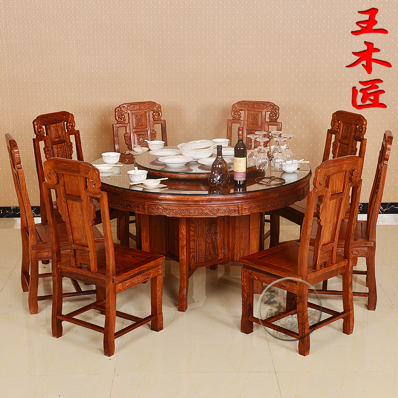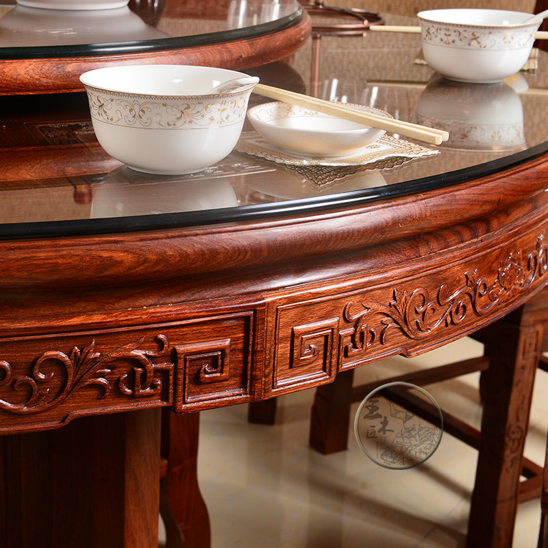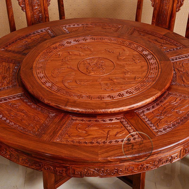 王木匠非洲黄花梨木餐桌椅黄花梨雕花圆台
