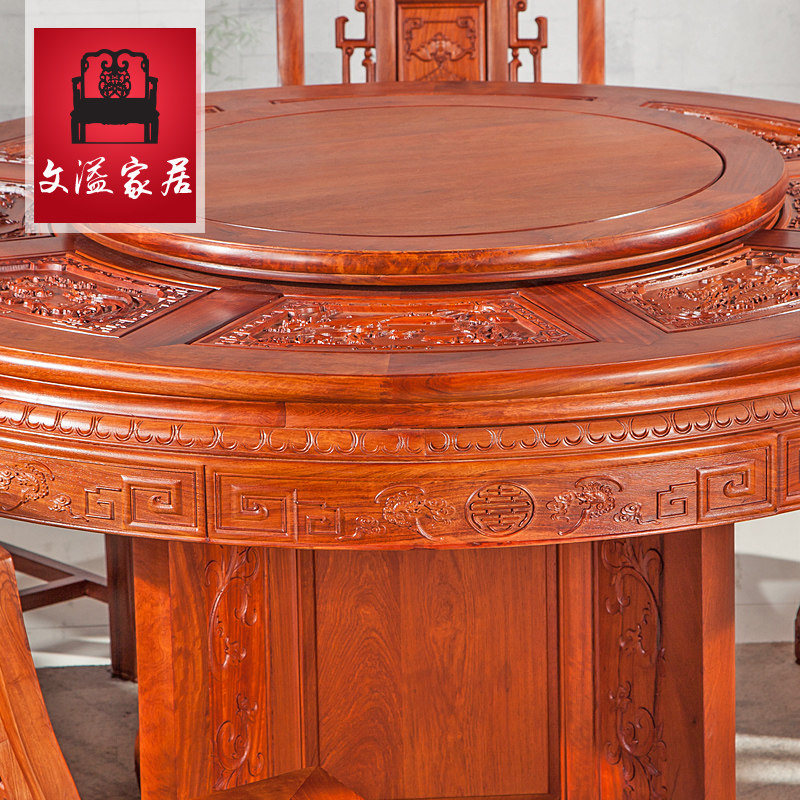 文溢梨木中式实木圆桌缅甸花梨木圆桌8座