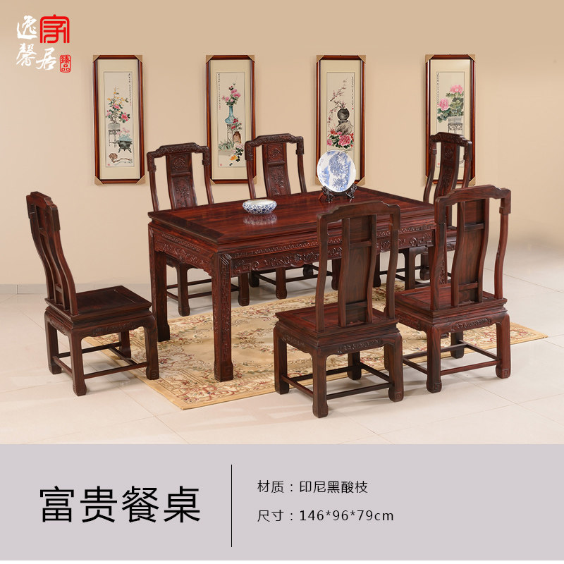 逸馨东阳红木家具印尼黑酸枝木餐桌HSZ-06