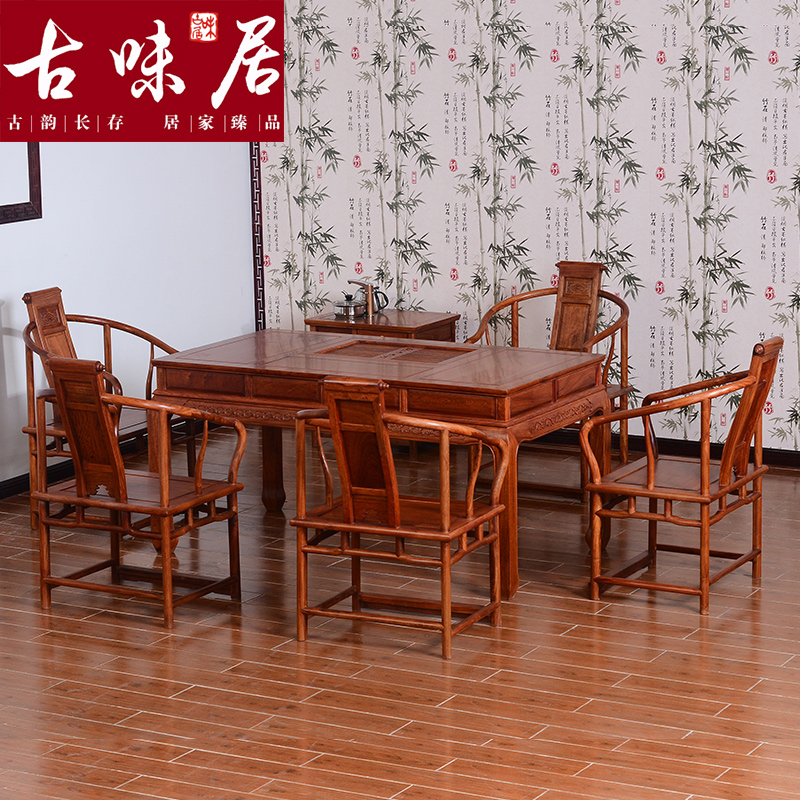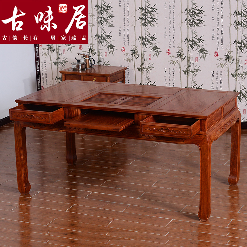 古味居中式缅甸花梨木实木功夫茶桌MZ1