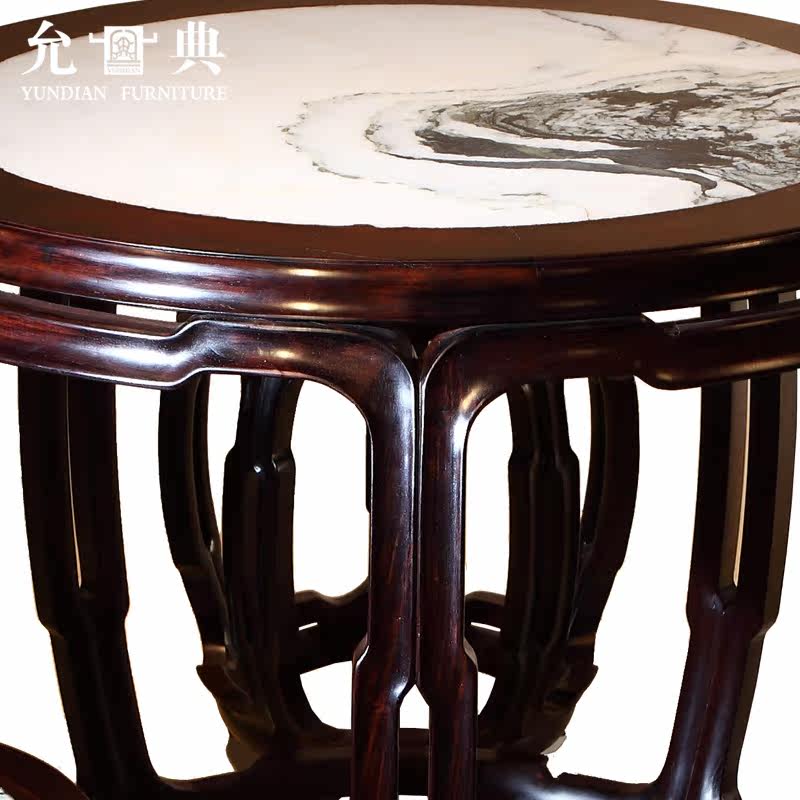 允典红木家具红酸枝云石铜鼓台0990025HSZF