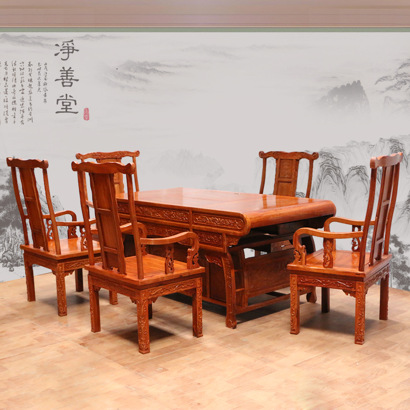 净善堂东阳红木家具非洲黄花梨中式茶桌cz-10