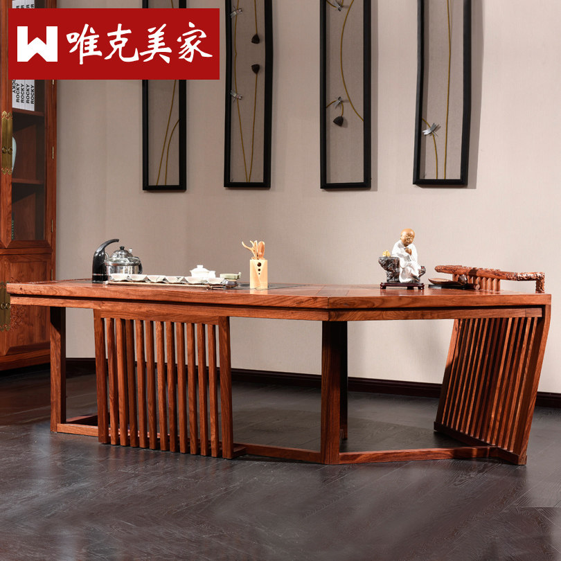唯克美家新中式红木家具紫檀实木转角功夫茶