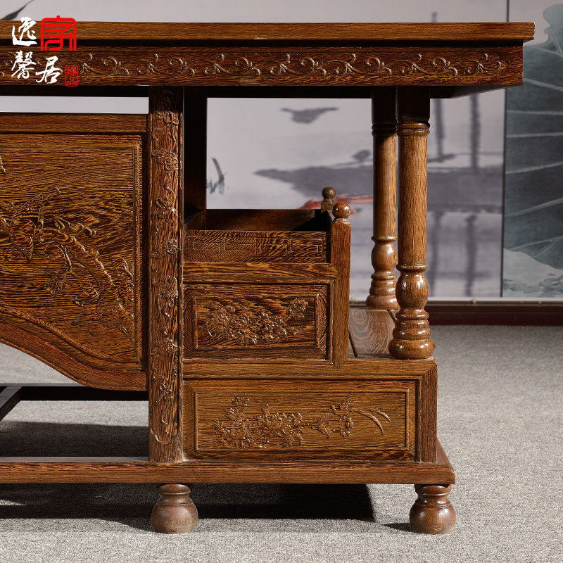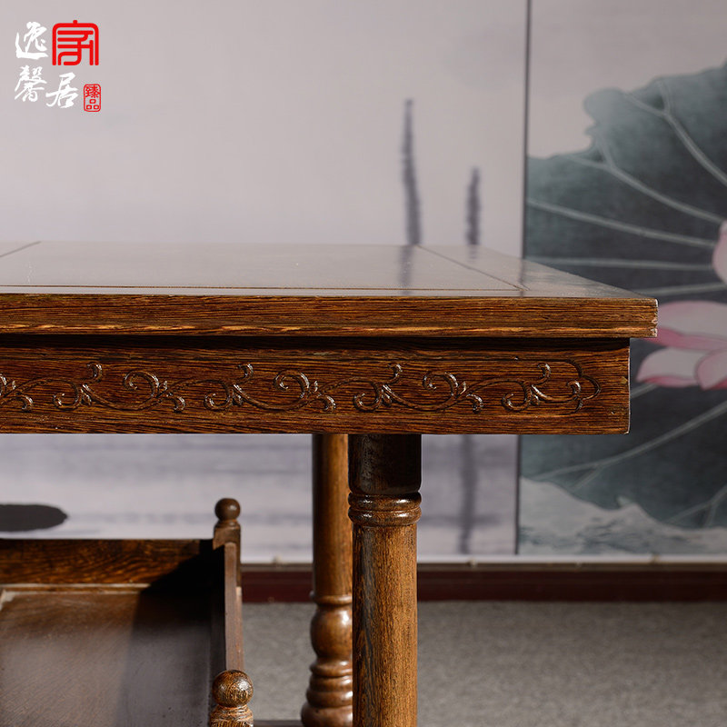 逸馨红木家具鸡翅木牡丹茶桌cz-A8