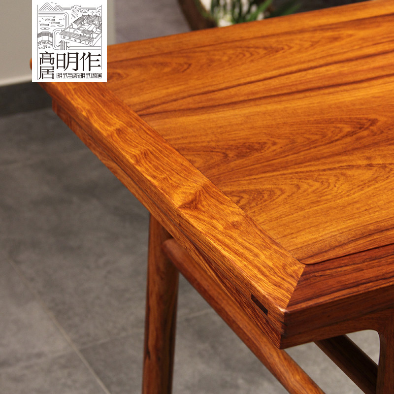 高居明作红木家具缅花白酸枝夹头榫画案