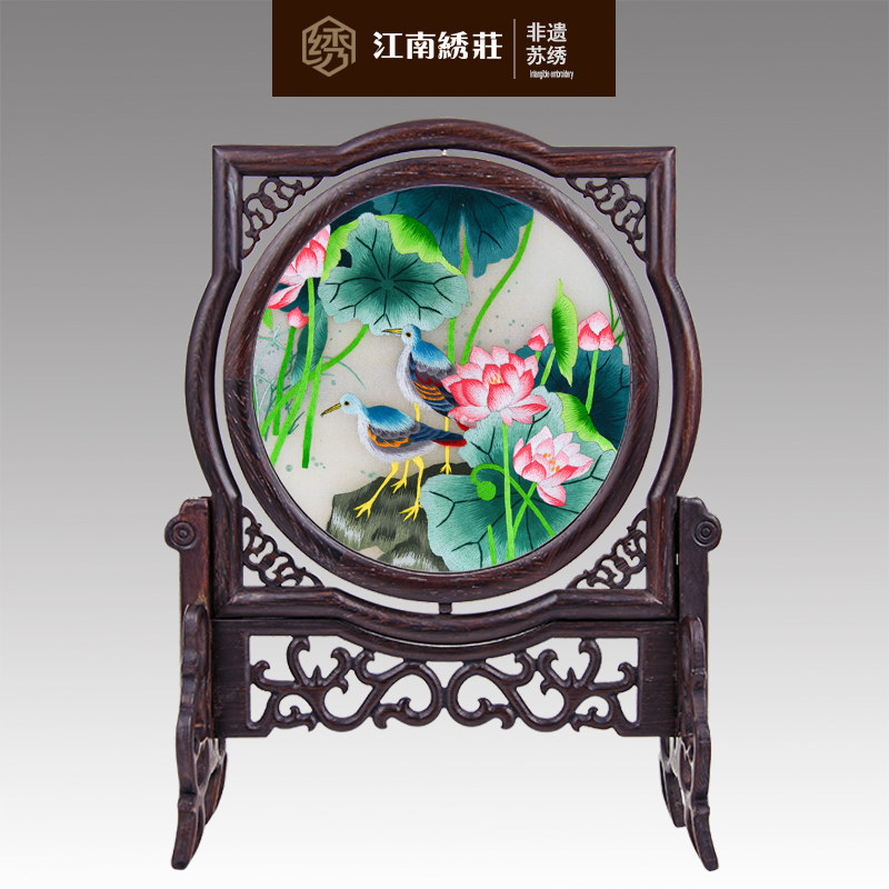 江南绣庄苏绣双面绣红木摆件SMXQJ-006