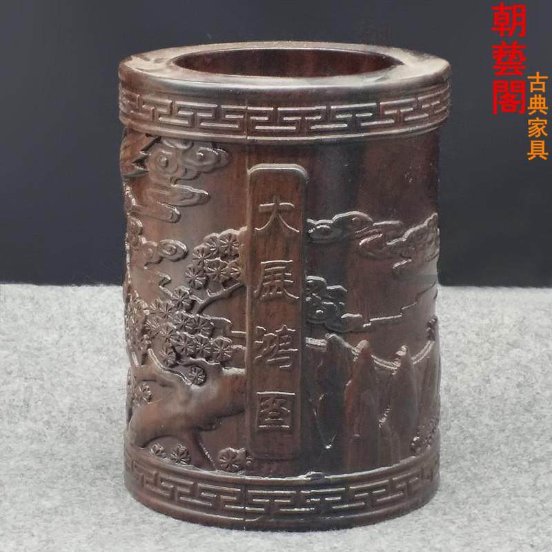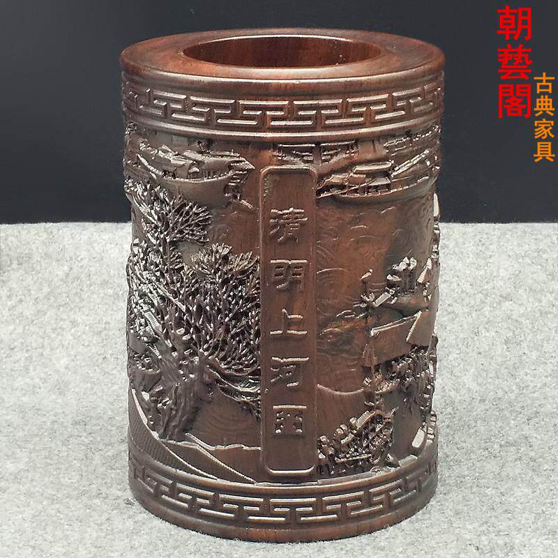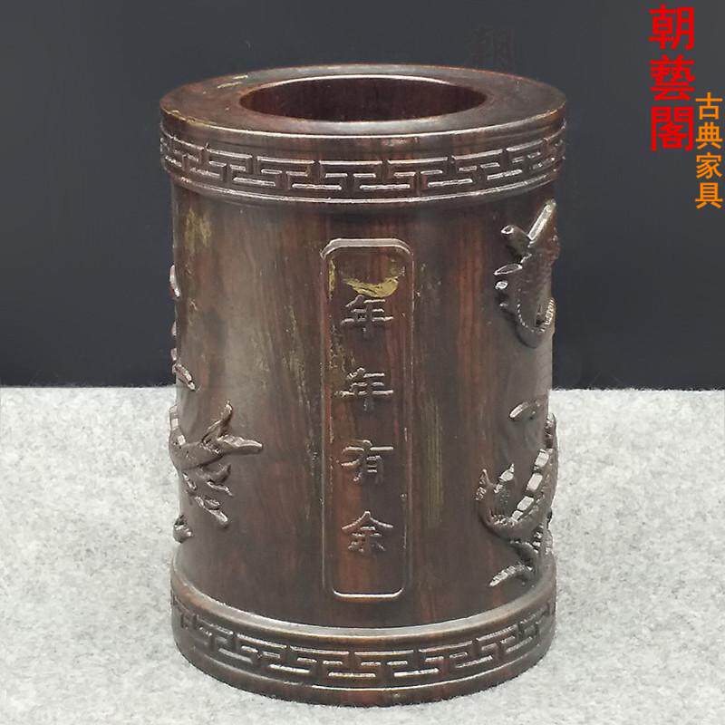 朝艺阁黑檀木笔筒红木雕创意办公桌摆件cyg-1827
