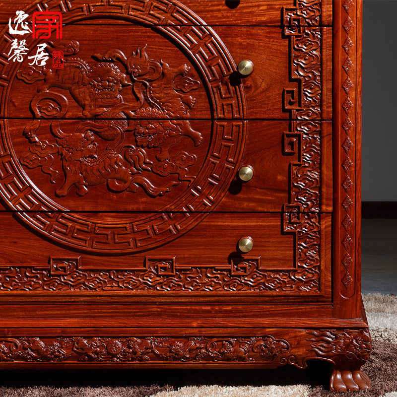 逸馨红木家具缅甸花梨木五斗柜JZFDG003