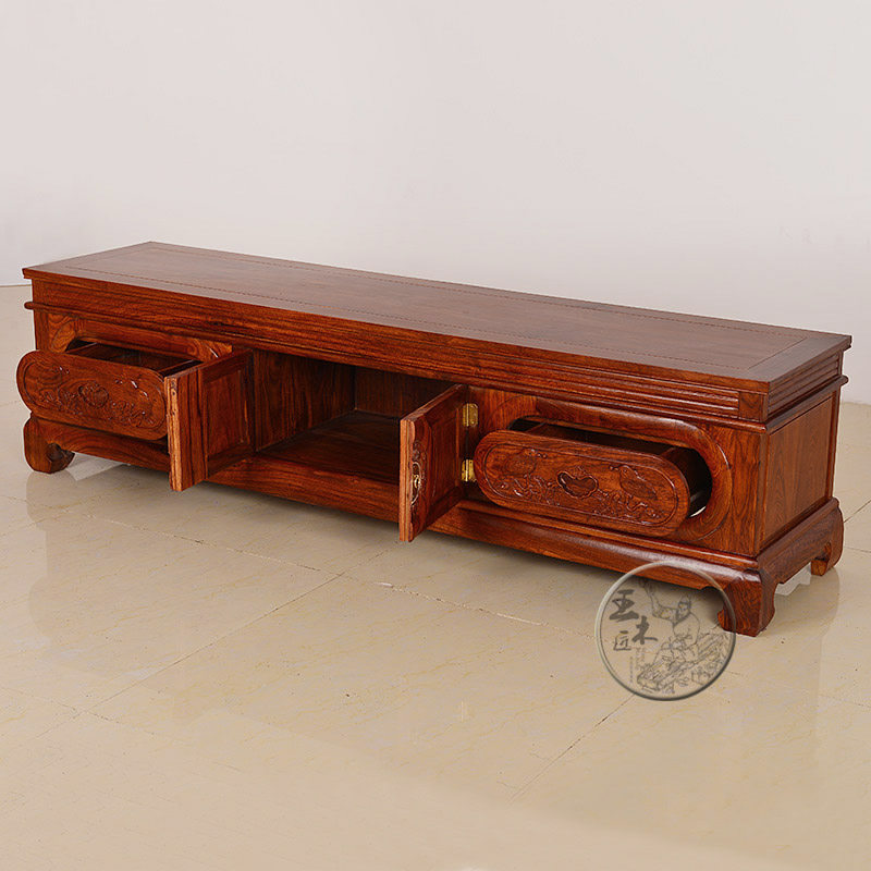 王木匠红木实木电视柜花开富贵电视柜1