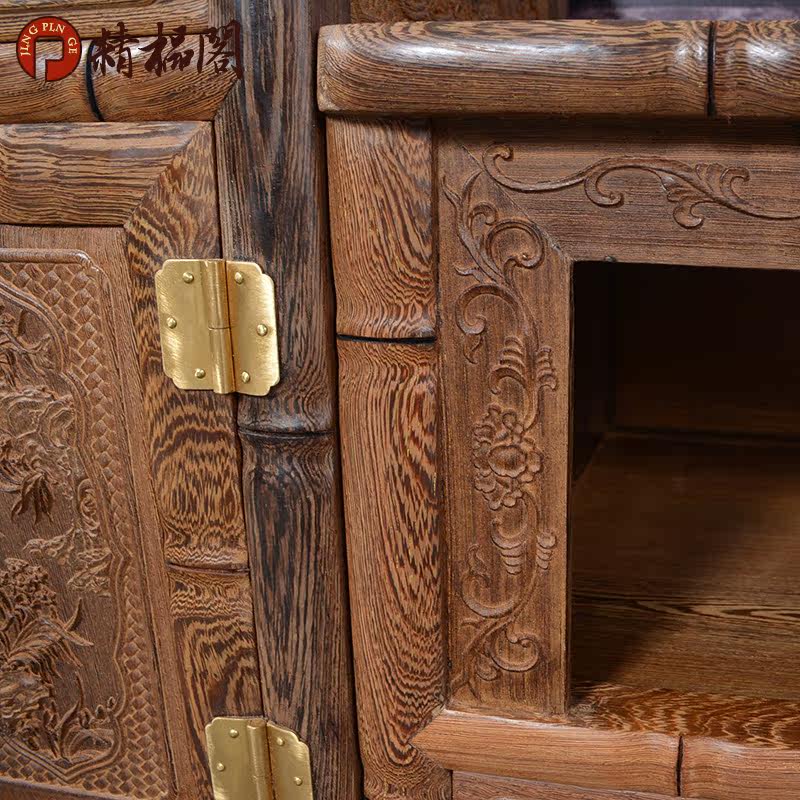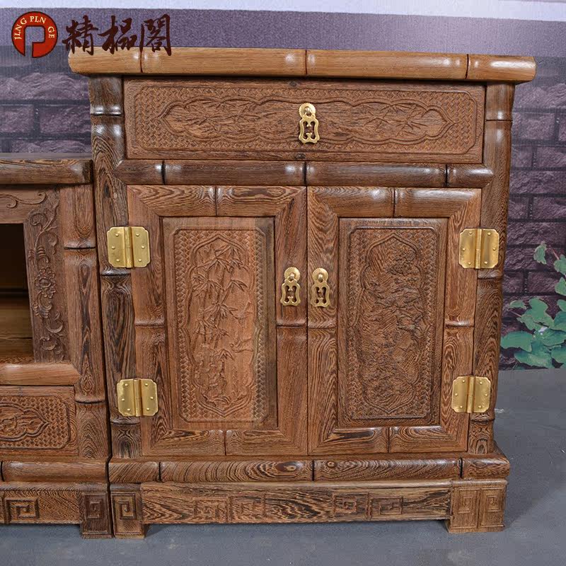 精榀阁红木家具实木鸡翅木竹节电视柜P068