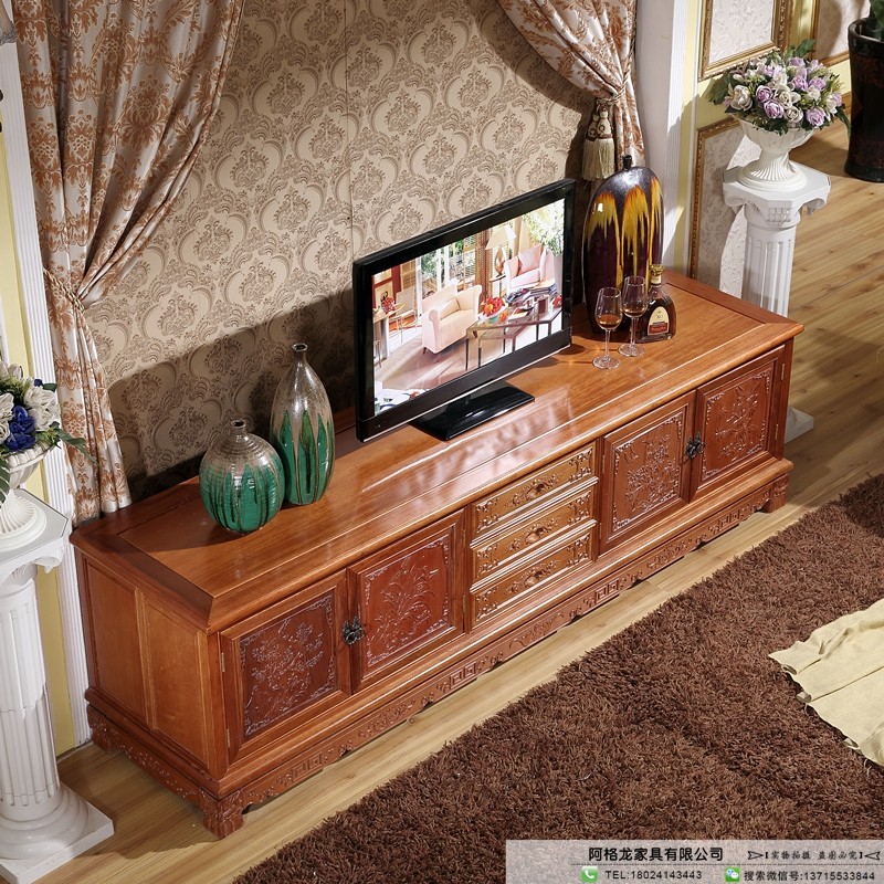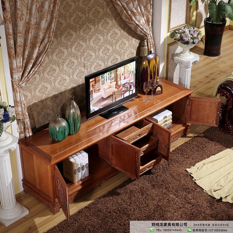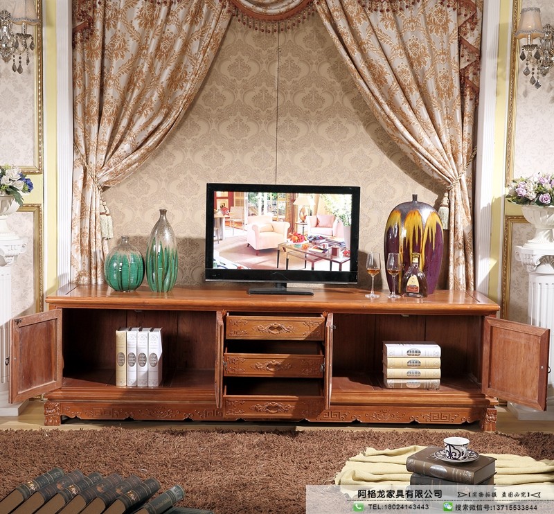 粤天域实木法式雕地柜红木电视柜欣荣大百福