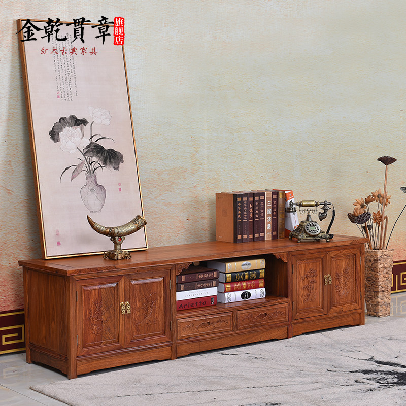 金乾贯章红木家具非洲花梨中式古典影视柜