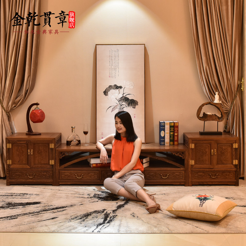 金乾贯章红木家具鸡翅木电视柜